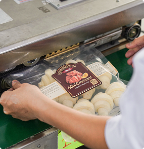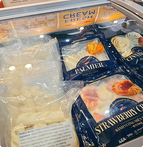 Gần như không khác biệt! Vì bánh được sản xuất theo công thức độc quyền, cấp đông ngay sau khi tạo hình để “khóa” lại độ tươi – nên khi nướng lên, bánh vẫn giòn ngoài – mềm trong, thơm phức như bánh mới tại tiệm.